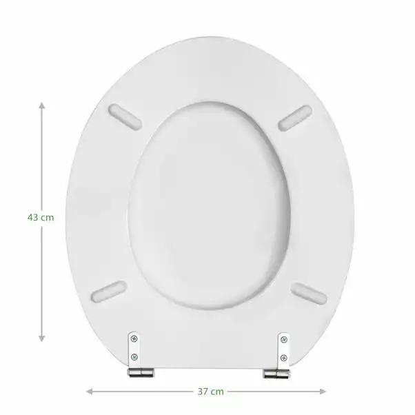 Crafted from MDF, this white toilet seat has an embossed linear grooved design with rust proof stainless steel hinges and a heavy weight of 3kg.