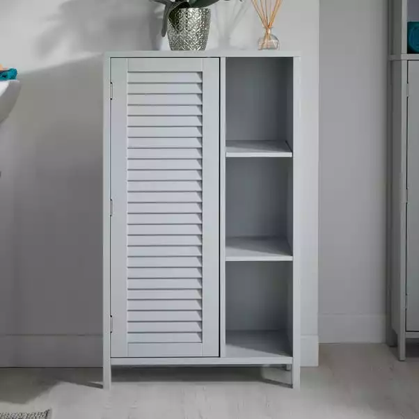 The perfect console unit for your bathroom, the Tuscany features a modern and handle less slatted door design with multiple shelves. It is easy to assemble and boasts ample storage space to tidy away clutter, keeping your bathroom neat and organised. This grey console unit is an ideal bathroom storage solution that will add a touch of style to your space.