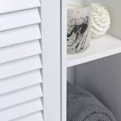 The perfect console unit for your bathroom, the Tuscany features a modern and handle less slatted door design with multiple shelves. It is easy to assemble and boasts ample storage space to tidy away clutter, keeping your bathroom neat and organised. This white console unit is an ideal bathroom storage solution that will add a touch of style to your space.