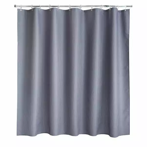 Made from water repellent and soft touch polyester, this waffle grey shower curtain has chrome colour copper eyelets for ease of hanging up and a weighted hem so it drapes beautifully over your bath.
