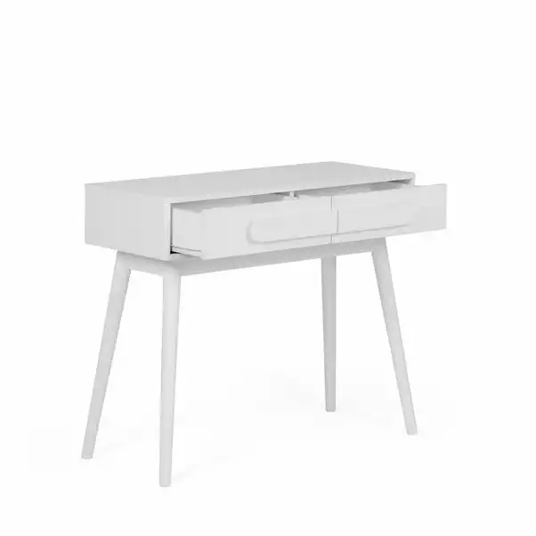 The Anders dressing table features a large work surface, two spacious drawers complete with metal runners and a stylish tapered leg design.