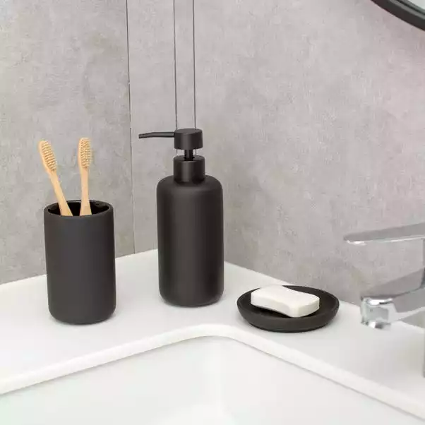 In a classic matt black colour, this modern designed Elements tumbler is crafted from 100% ceramic and has matching bathroom accessories available to make your home super stylish and pulled together. Wash before first use.