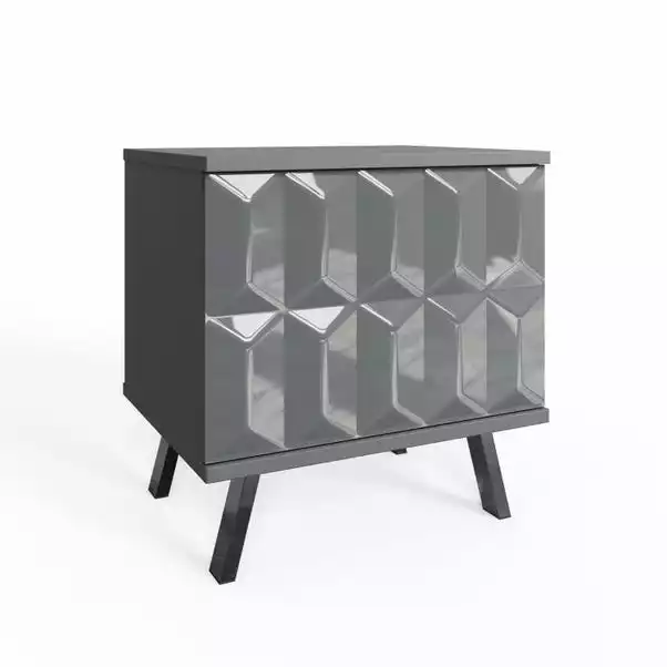 Featuring push to open doors with internal shelving to store away all your bits and bobs, this deep textured contemporary table has a high-gloss painted finish with unique smoked chrome legs. Suitable for many rooms as it’s perfect to use as a lamp table or bedside table.