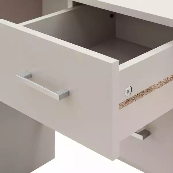 The Panama Desk is a traditional style desk boasting a wealth of storage space, in a beautiful Paper Foil finish. It Features a compact design couples with a spacious working surface able to fit a Desktop PC or Laptop and Lamp. Including 2 Drawers boasting a massive 16 Liters of hidden storage each fir with modern handles this piece is both practical and stunning.