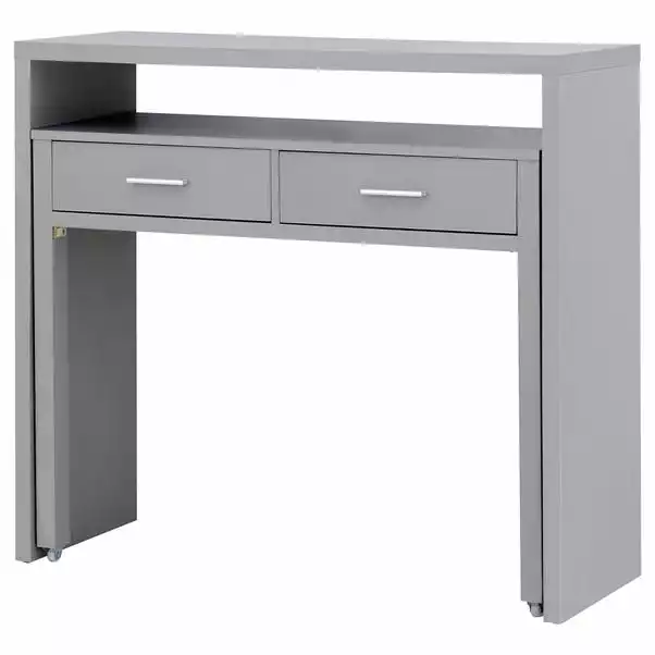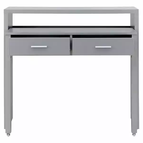 The Regis Desk is a traditional style desk boasting a wealth of storage space, in a beautiful Grey finish. It features Retractable shelves on wheels and 2 spacious drawers boasting 10 Liters worth of storage space each, making the Regis both a functional and attractive choice.
