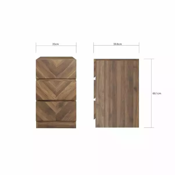 If you love a little old-school style, this retro-inspired bedside table with 3 spacious drawers is the perfect piece for your bedroom. With a wood effect finish, parquet style front and a retro inspired design – it’s as beautiful as it is useful!