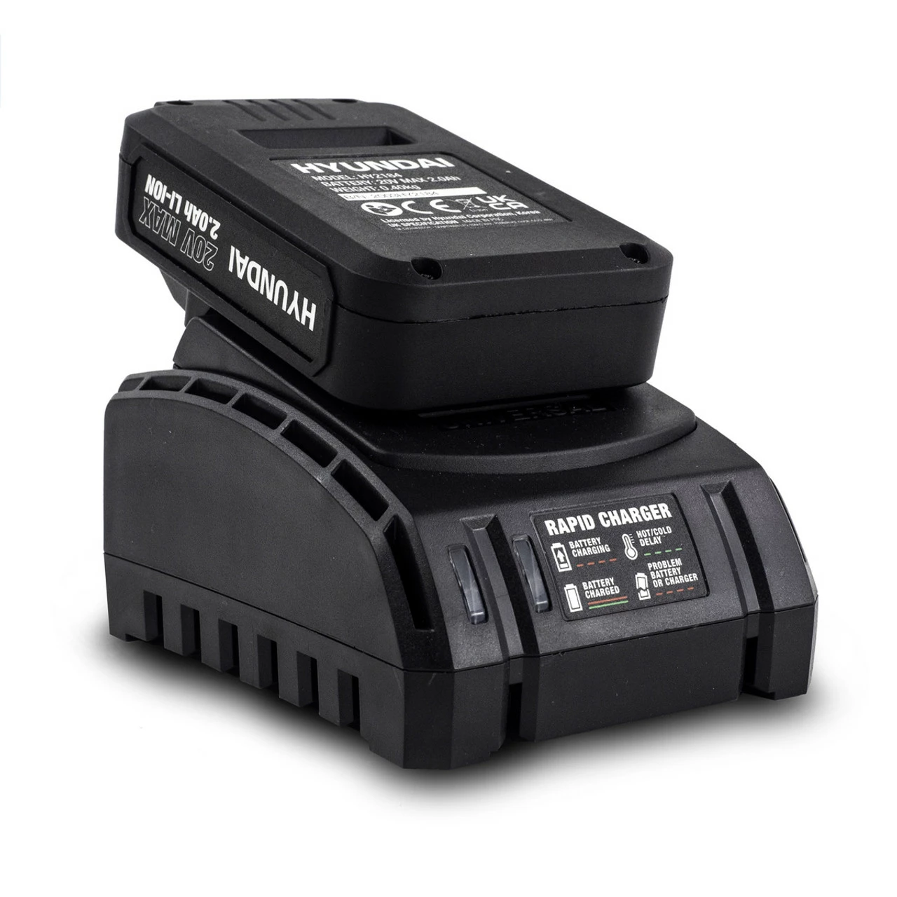 - Interchangeable battery: Power the whole Hyundai 20v garden machinery and power tool range from the same battery