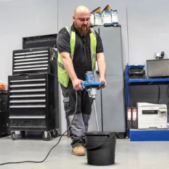 The HYPM1600E is a powerful, high-torque 1600W corded electric paddle mixer from Hyundai which comes complete with a 5-piece trowel set, ideal for quick, effortless and convenient mixing of paint, plaster, gypsum, adhesive, mortar, small buckets of cement, and other mid-viscosity liquids. The HYPM1600E’s tough and durable 1600w motor can tackle a range of materials and is able to produce an impressive and time-saving variable mixing speed of up to 990rpm! It features a pressure-sensitive trigger so you have total fingertip control over the mixing speed. Despite its body being built from sturdy composite plastic, this budget-friendly corded paddle mixer weighs just 5.4kg, making it easy to use for extended periods without straining your arms, your shoulders, or your back.