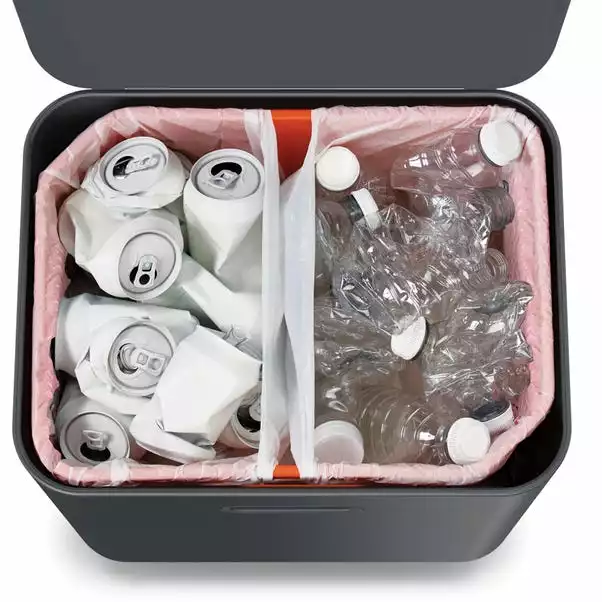 Made with a vertical design to maximise capacity in a compact space, this press bin with integrated odour control due to the replaceable activated carbon filters is ideal for your kitchen. This bin has 2 30L compartments for separating waste and recycling, a 3L removable food waste caddy with lid and removable buckets with a liner retaining holes and carrier bag hooks. The modern colourway will complement an array of home decors beautifully.