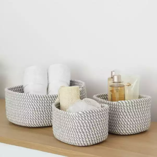 Introducing the Edison collection from JVL, this range offers practical and stylish storage solutions for your home. Not just for storage, the baskets make a statement piece that can be placed on a shelf or sideboard containing your household items or décor for a design feature. Perfect for keeping your home tidy and clutter-free, the versatile storage baskets are made from thick cotton rope, have a sturdy round structure and the soft grey and white tones of the rope complement most contemporary interior décor styles.
