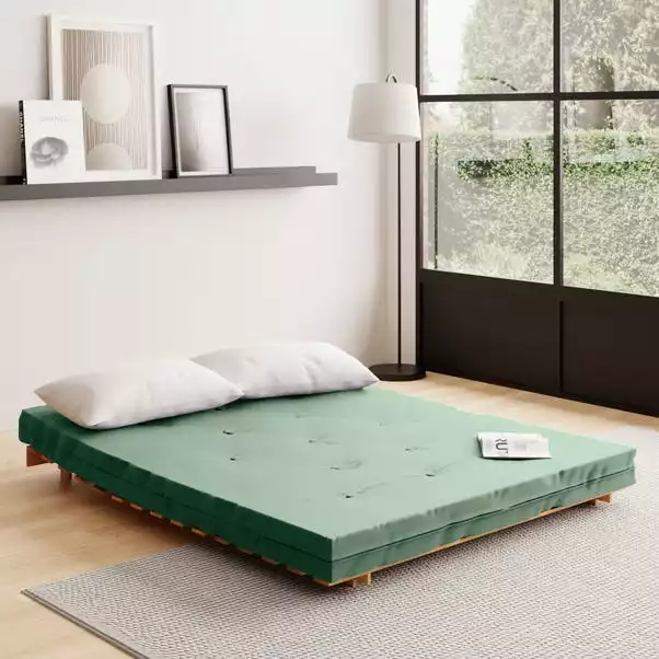 A handy, versatile futon for the modern home in a timeless design to complement any decor. The Mito Double Futon features a great space saving solution for where space is at a premium. This Futon folds out easily from a seat to a comfortable bed for guests. The Mito Double Futon is constructed from solid pine and comes complete with a quality fibre blend button design mattress.