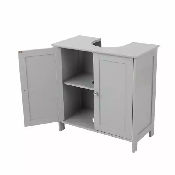 Fitting neatly under your bathroom sink, this underbasin unit is ideal for storing your bathroom cleaning products. In a stylish grey colour, this cabinet is contemporary in design and features 2 useful shelves inside.