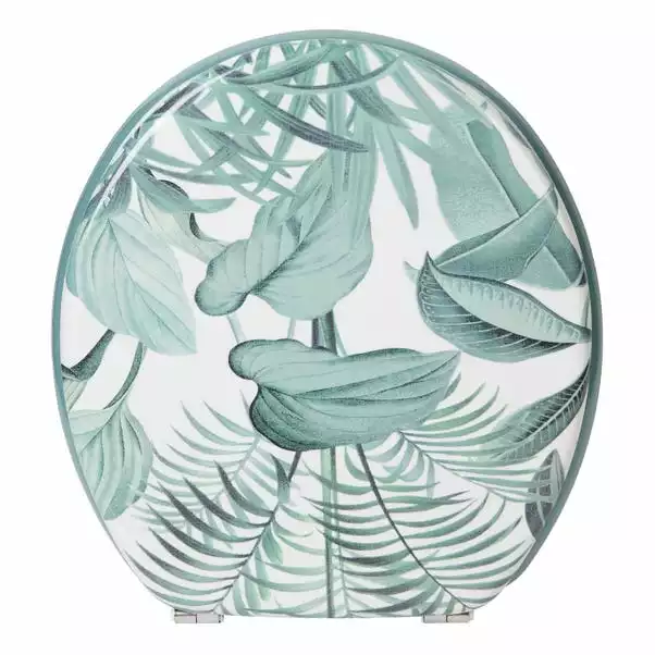 A tropical leaf design fills the lid of the toilet seat and the ring remains a solid green. The contemporary designed toilet seat is crafted from discarded wood shavings and fibres, making the seat hard-wearing. The stainless steel hinges are rust proof. Part assembly is required and can be wiped clean.