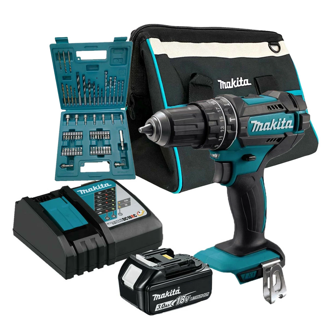 Makita DHP482Z Cordless 18V LXT 2 Speed Combi Drill Bundle with 1x 3.0Ah Battery