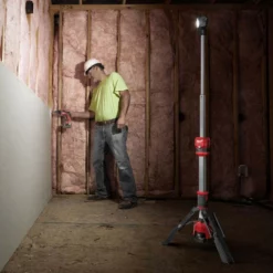 The Milwauke M12™ Rocket Dual Power Tower Light is more portable and offers an all-day operation. The compact light tower is the lightest in its class with a 45% smaller footprint than our M18™ Rocket Tower Lights. This allows you to easily carry and set it up in the most confined spaces. When not in use, the portable light tower collapses down to just 31″ in length with three side handles allowing you to easily transport and store it. After deployment, the portable tower light is supported by impact-resistant, reinforced legs that form a compact base with a low center of gravity to help survive any job site.