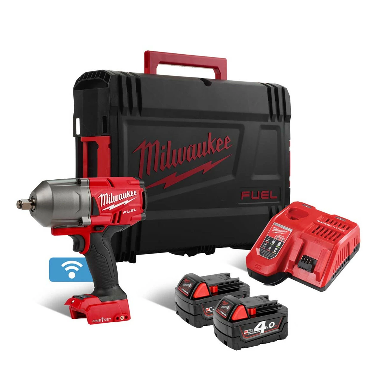 Milwaukee M18 ONEFHIWF12-402X 18V Fuel ONE-KEY Brushless 1/2″ Impact Wrench with Friction Ring Kit & 2x 4.0Ah Batteries