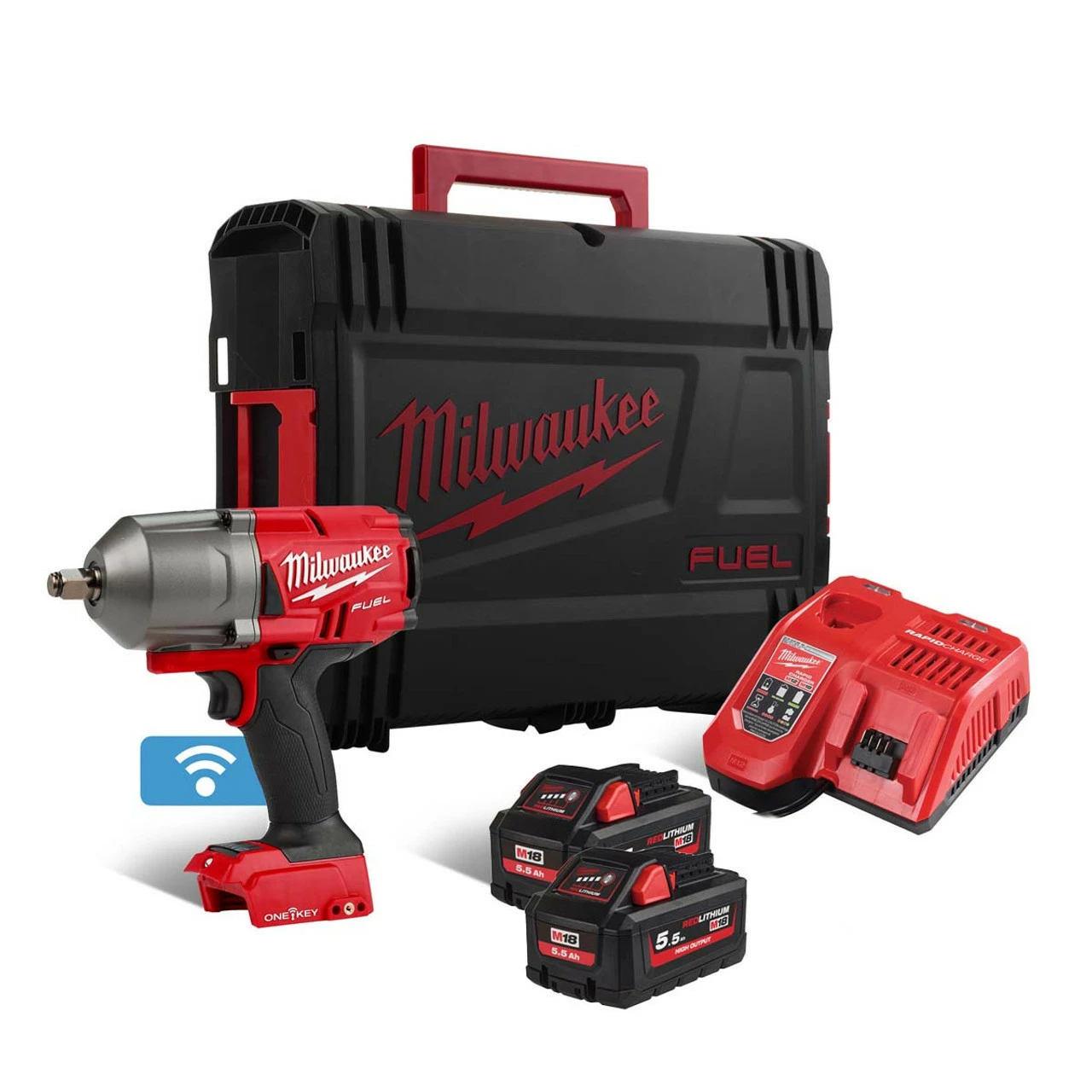 Milwaukee M18 ONEFHIWF12-552X 18V Fuel ONE-KEY Brushless 1/2″ Impact Wrench with Friction Ring Kit & 2x 5.5Ah Batteries
