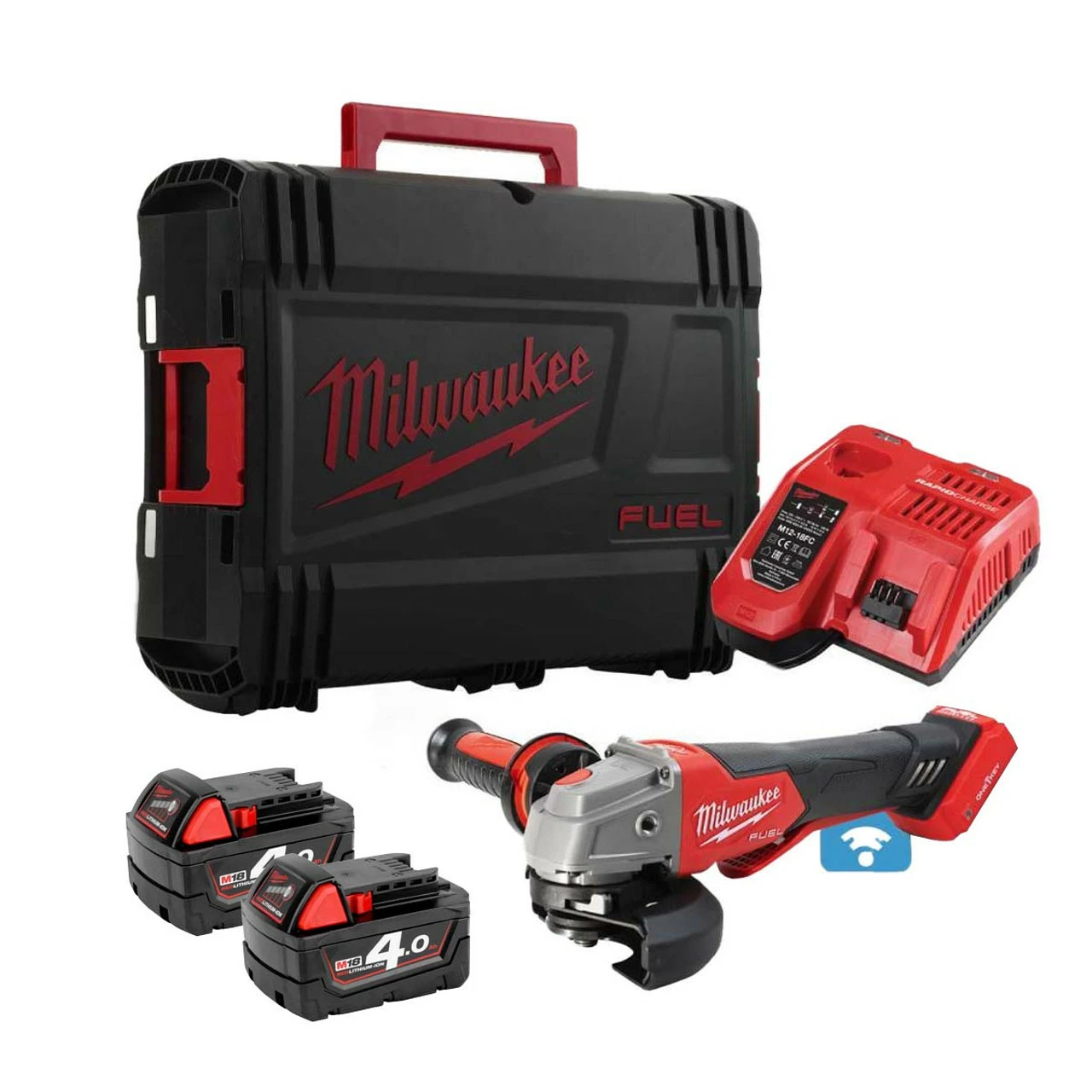 Milwaukee M18 ONEFSAG115XPDB-402X 18V Cordless One-Key 115mm Angle Grinder with 2x 4.0Ah Batteries