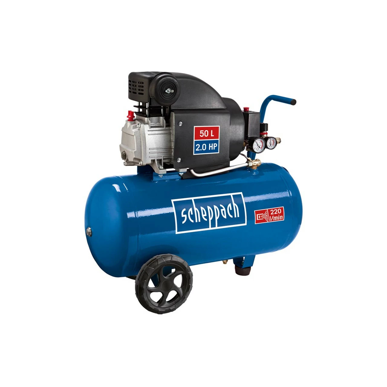Designed for the home user for light and light occasional use, the HC54 is an affordable air compressor that combines performance and safety in the one unit. It features a powerful 2.0 hp motor, 50 litre air receiver, 8 bar maximum operating pressure, and has a 220 L/min air flow intake with sufficient power to opperate a variety of tools. This Scheppach compressor is the perfect partner for occasional paint spraying, tyre inflation, blow cleaning, stapling and all those maintenance jobs in the garage, garden and around the home. Supplied with ultra performance long life SAE 5W-40 compressor oil (280 ml).
