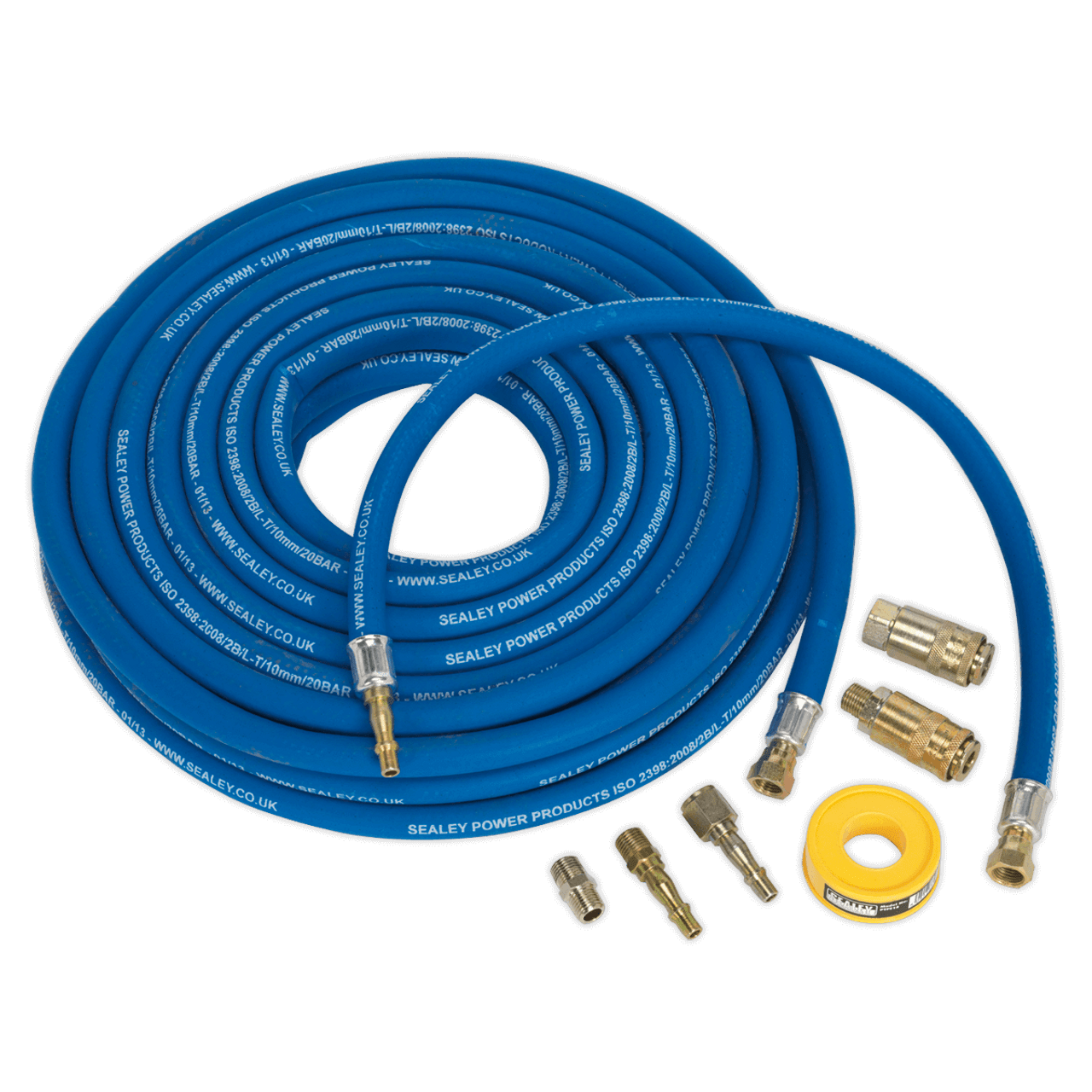 Sealey AHK02 Air Hose Kit Heavy-Duty 15m x Ø10mm with Connectors