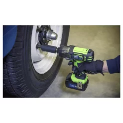 The Sealey CP400LI 18V 1/2″Sq Drive Cordless Impact Wrench in Green has a variable speed trigger and also has a double injected body with rubber grips for added comfort and control whilst working. This impact wrench as has a cast aluminium gearbox and produces up to 400Nm of torque. The impact wrench is supplied in a storage case with a 3Ah Lithium-ion battery and 80 minute mains charger.