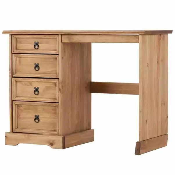 Offering style and excellent value for money the Corona Dressing Table will be the perfect addition to any bedroom. This dressing table is crafted from beautiful Mexican Pine and is protected with light wax while the metal fittings complement this rustic design. The four drawers will offer offer spacious storage space for those smaller bedroom items and features a larger bottom drawer.