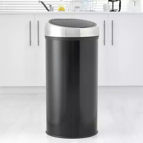 Formed from metal and finished in black, this 30-litre bin features a touch-top lid and an inner bucket for simple emptying of waste.